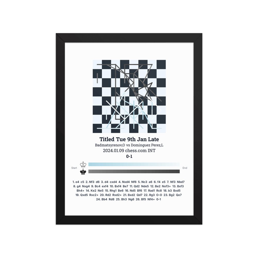 Museum-quality poster on thick, durable matte paper. A sharp, clean look for any chess visualisation.