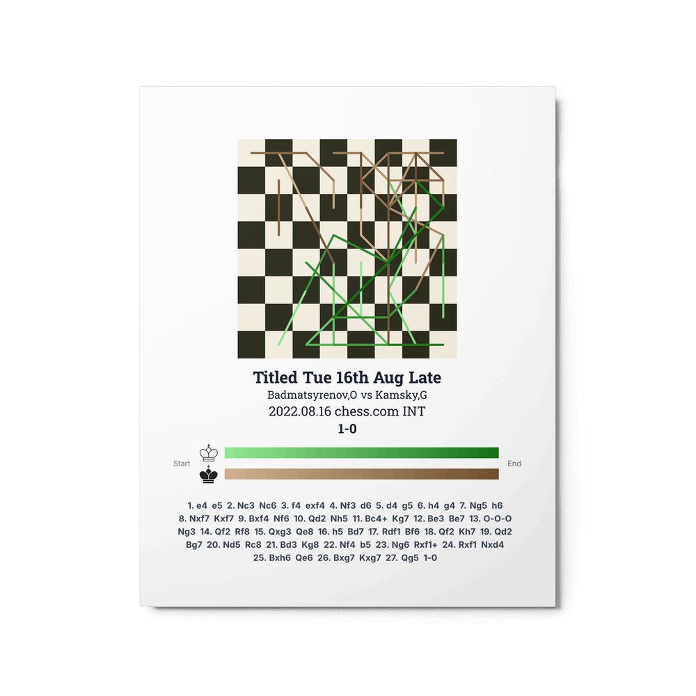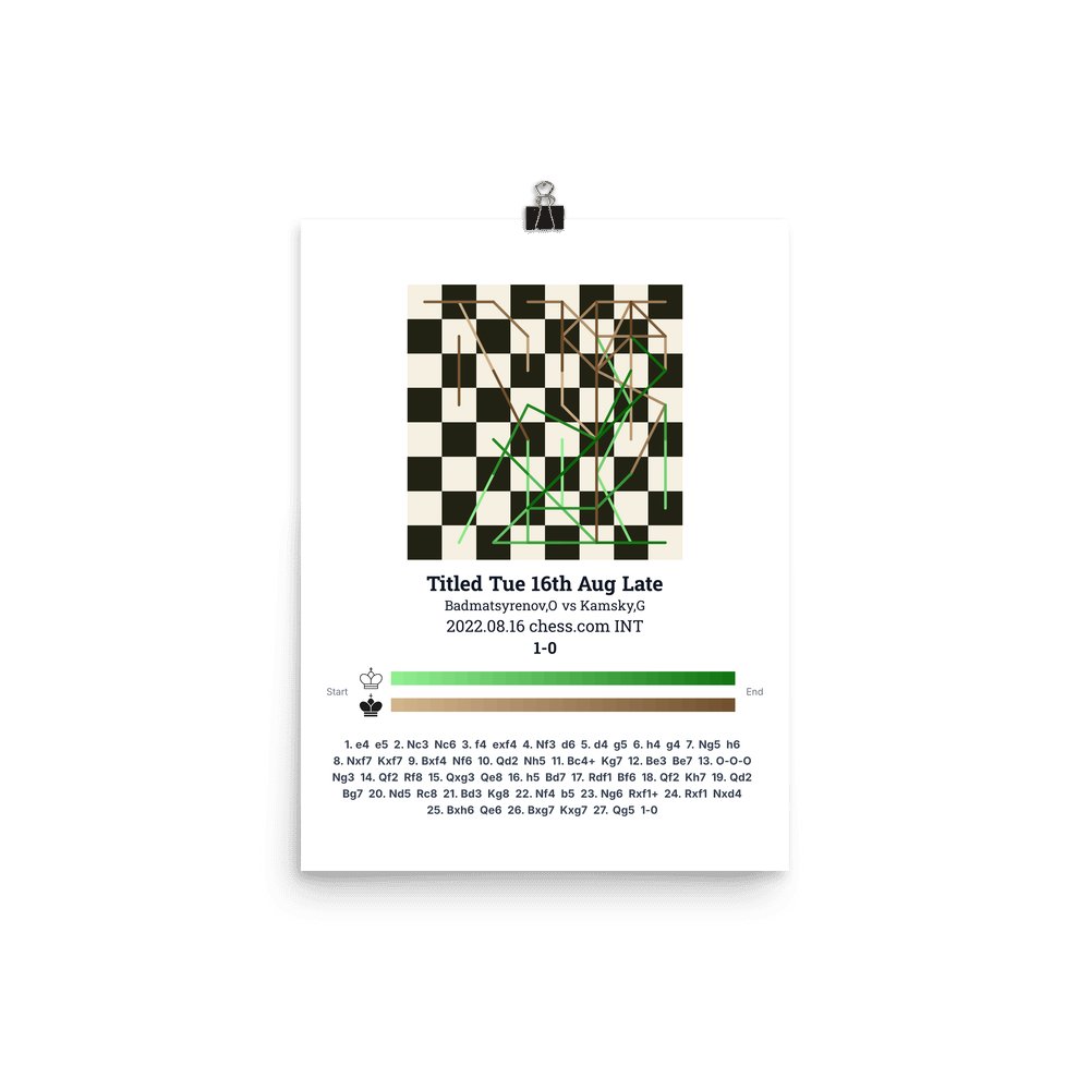 Museum-quality poster on thick, durable matte paper. A sharp, clean look for any chess visualisation.