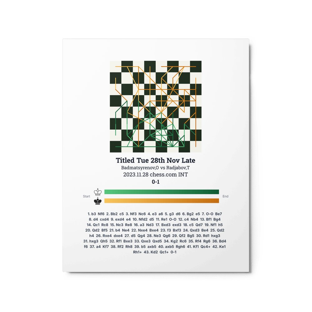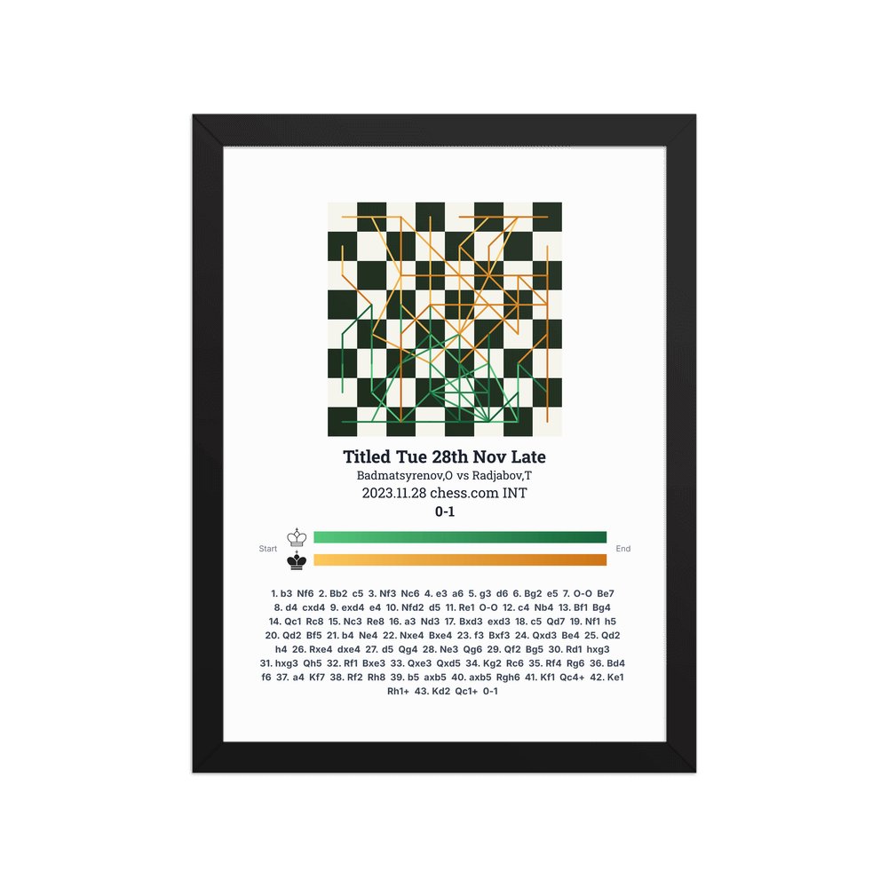 Museum-quality poster on thick, durable matte paper. A sharp, clean look for any chess visualisation.