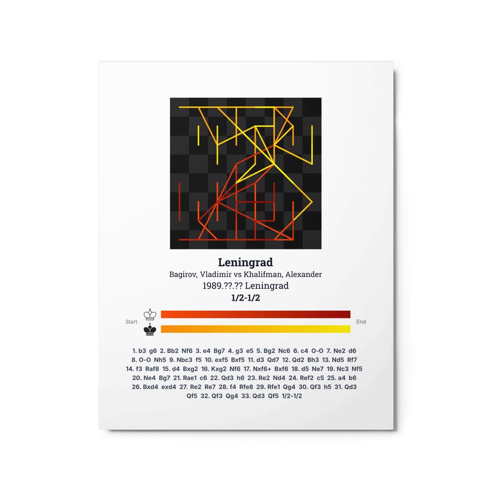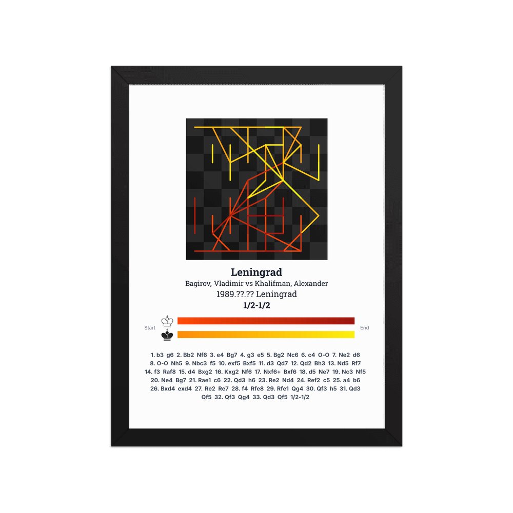 Museum-quality poster on thick, durable matte paper. A sharp, clean look for any chess visualisation.