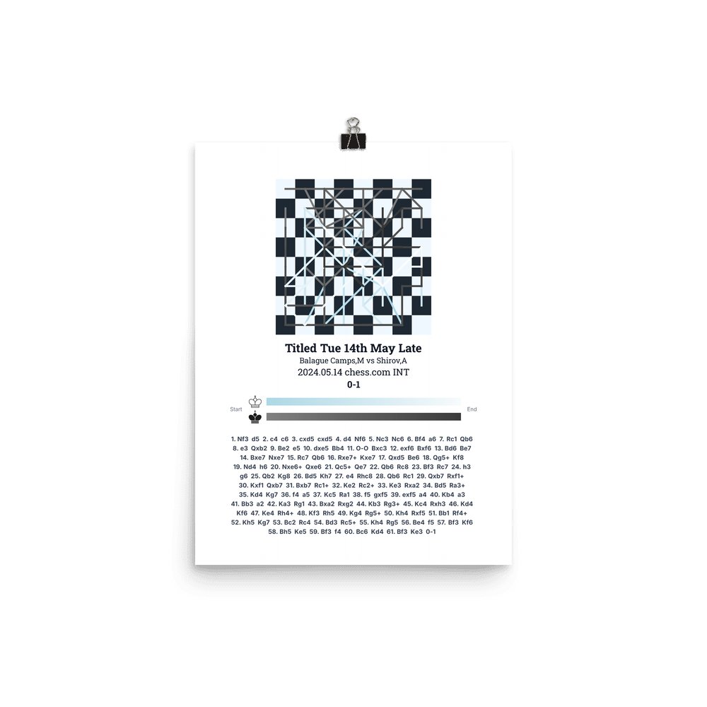 Museum-quality poster on thick, durable matte paper. A sharp, clean look for any chess visualisation.