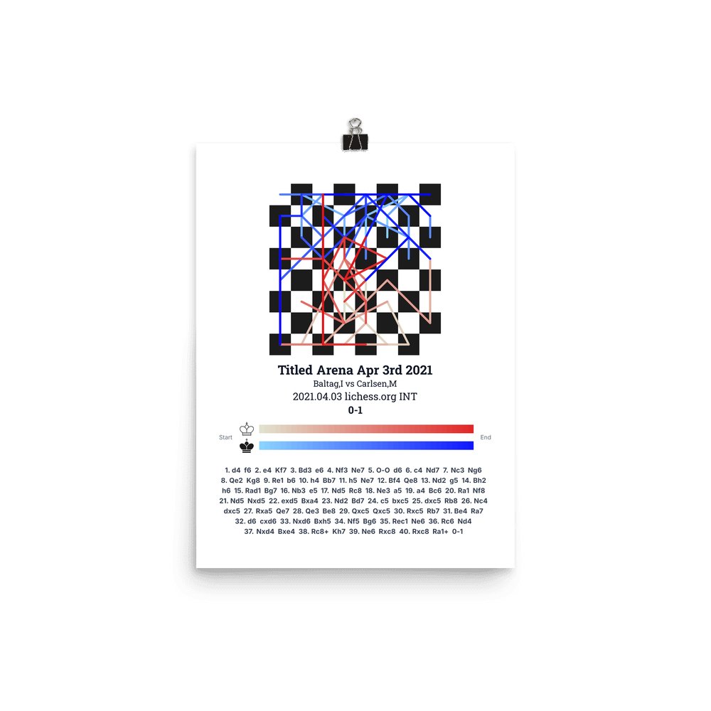 Museum-quality poster on thick, durable matte paper. A sharp, clean look for any chess visualisation.