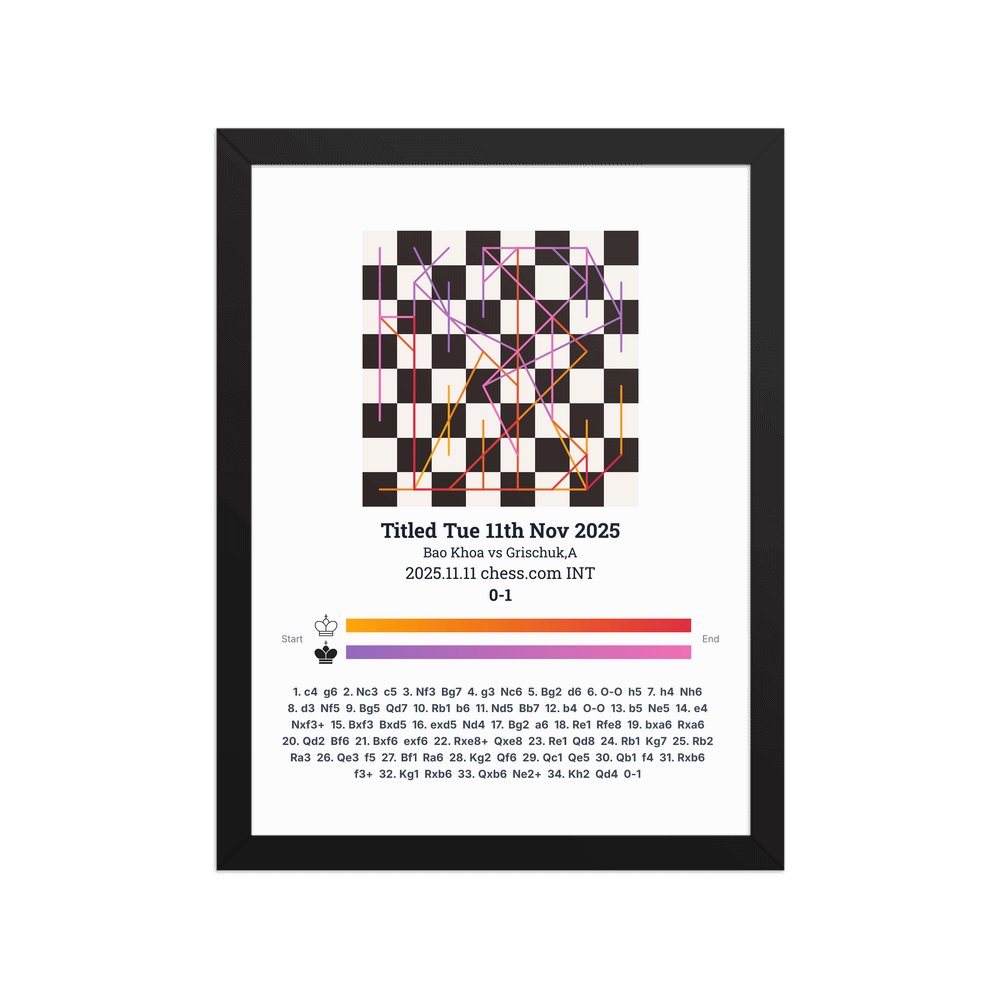 Museum-quality poster on thick, durable matte paper. A sharp, clean look for any chess visualisation.