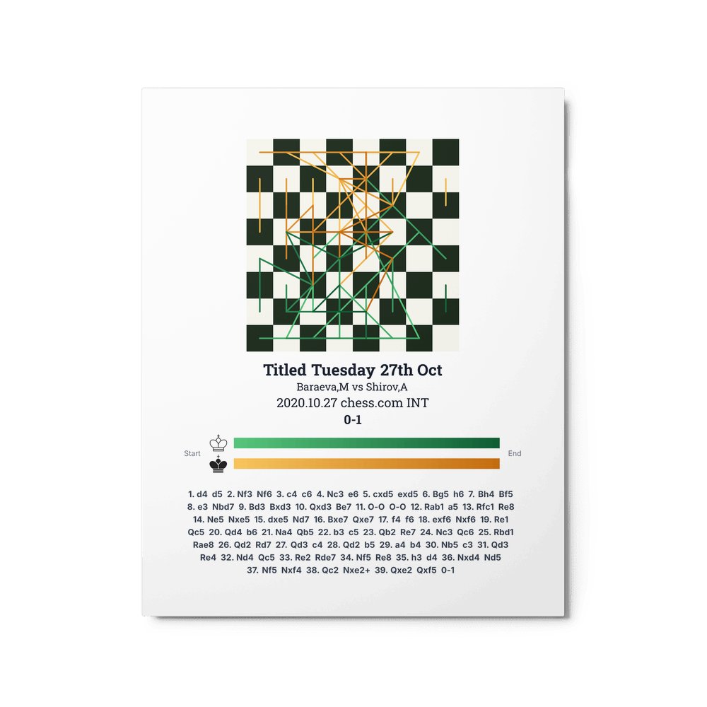 Museum-quality poster on thick, durable matte paper. A sharp, clean look for any chess visualisation.