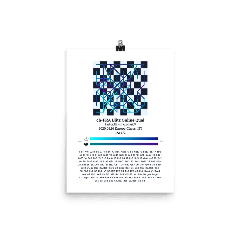 Museum-quality poster on thick, durable matte paper. A sharp, clean look for any chess visualisation.