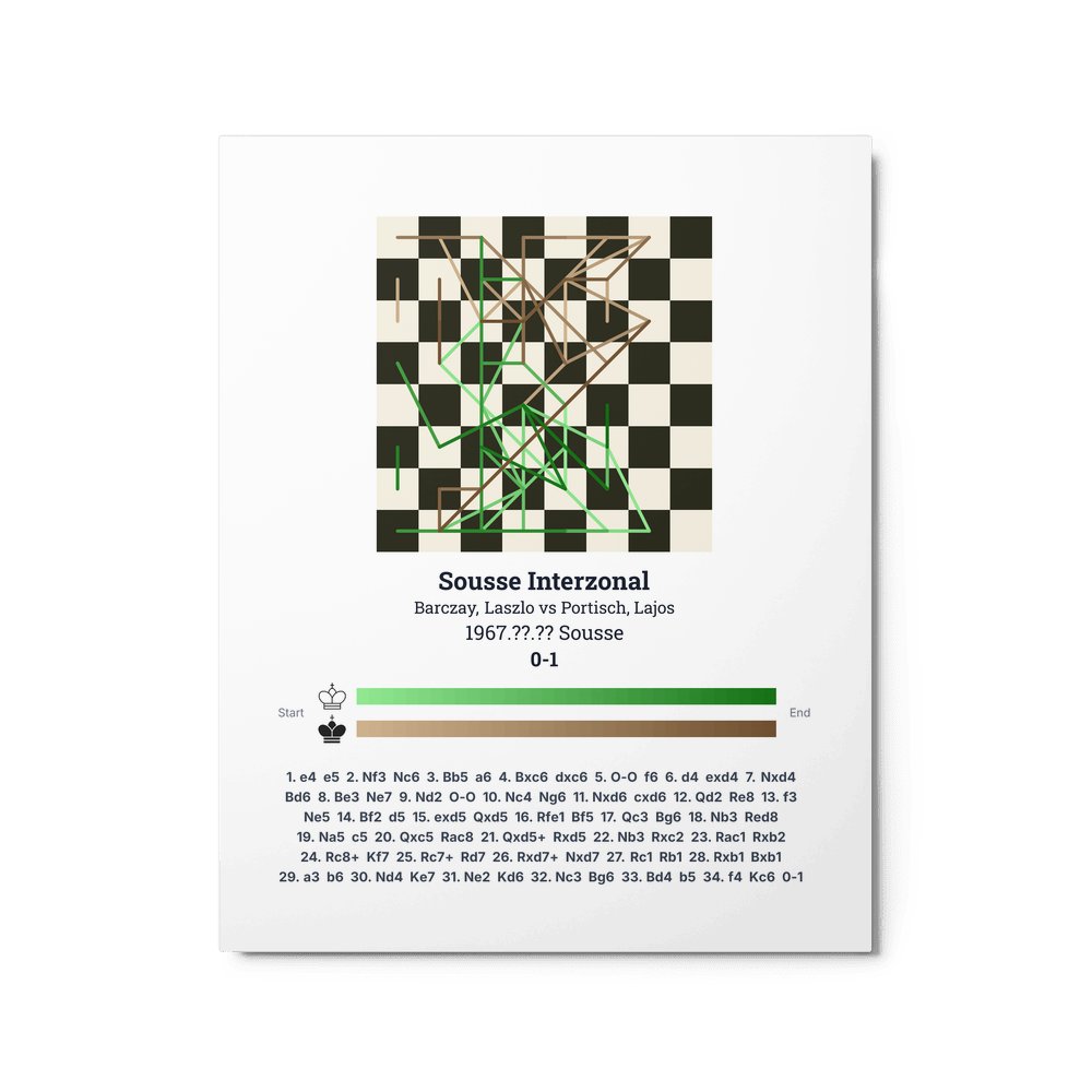 Museum-quality poster on thick, durable matte paper. A sharp, clean look for any chess visualisation.