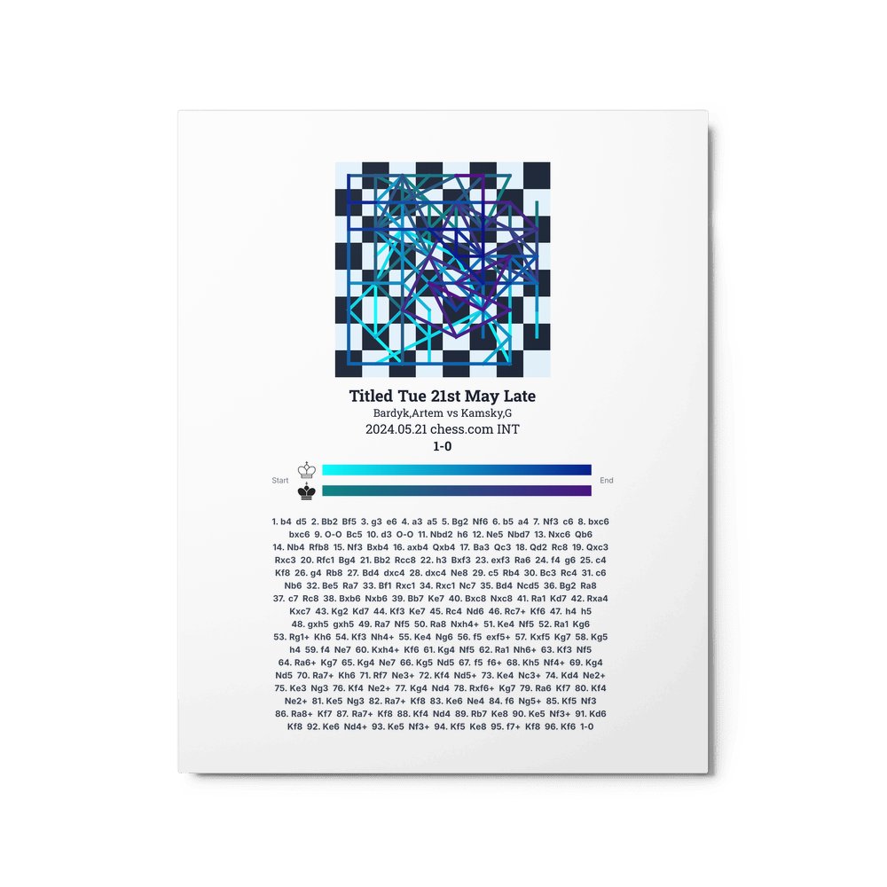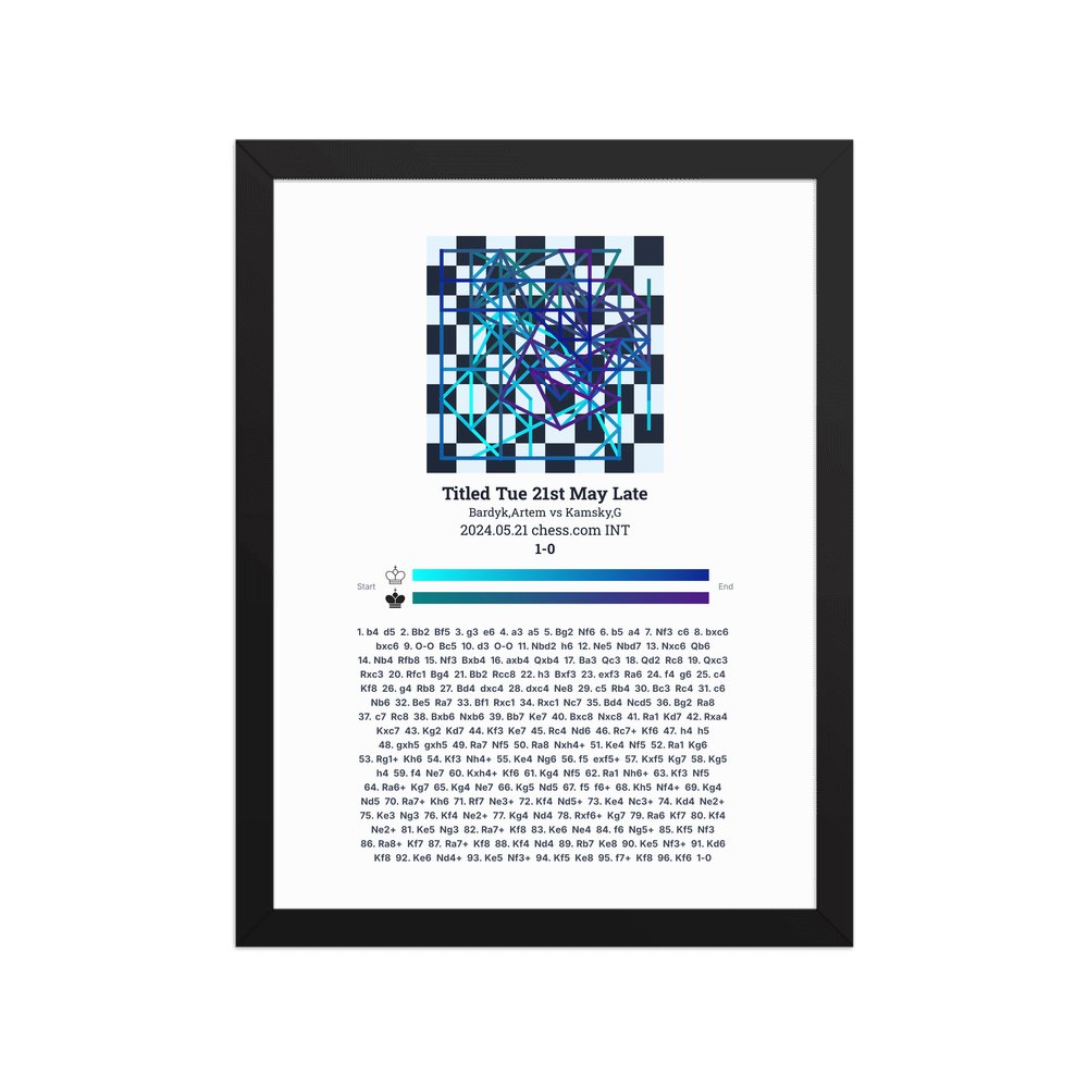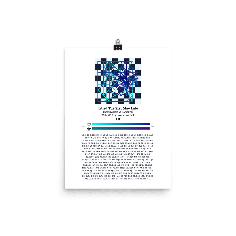 Museum-quality poster on thick, durable matte paper. A sharp, clean look for any chess visualisation.