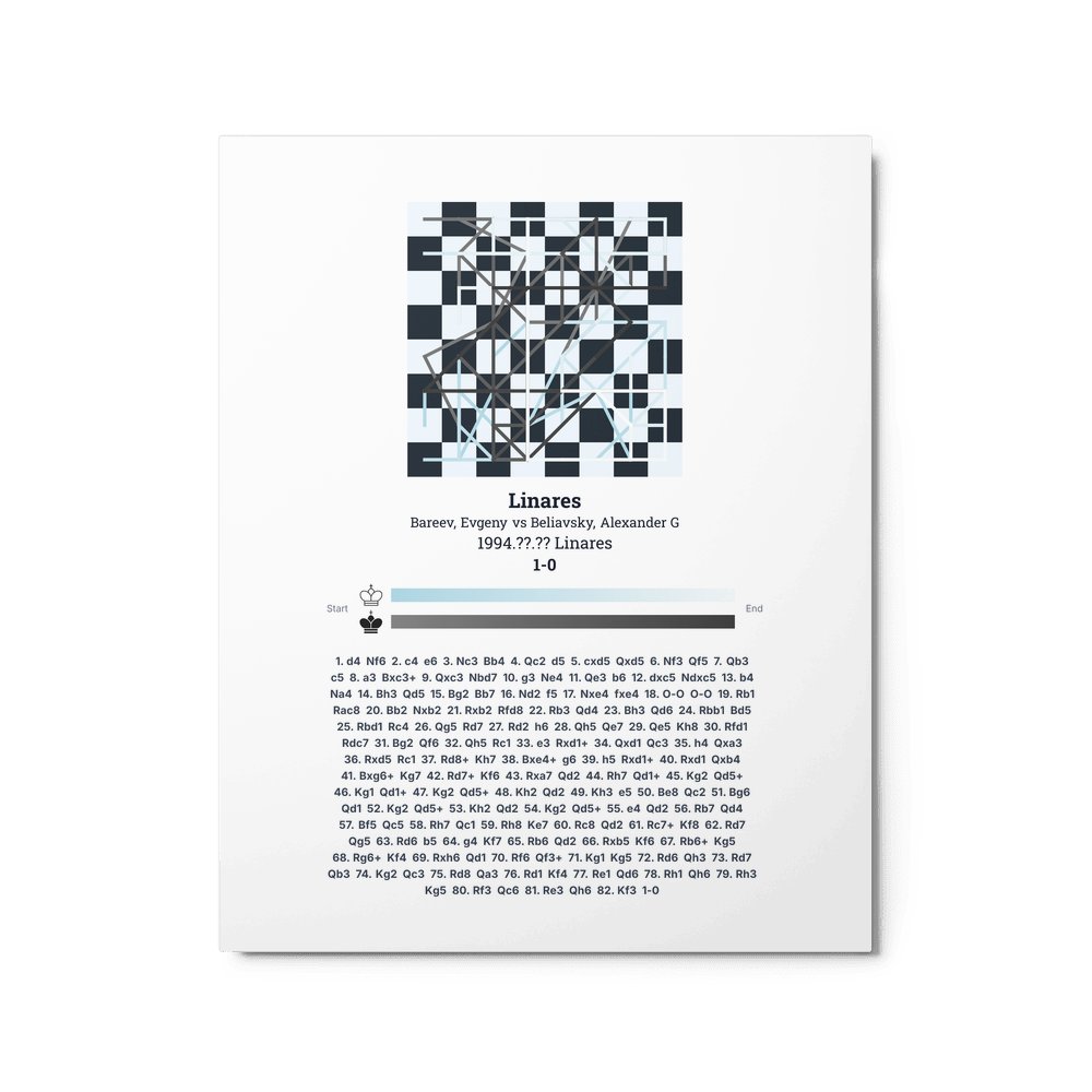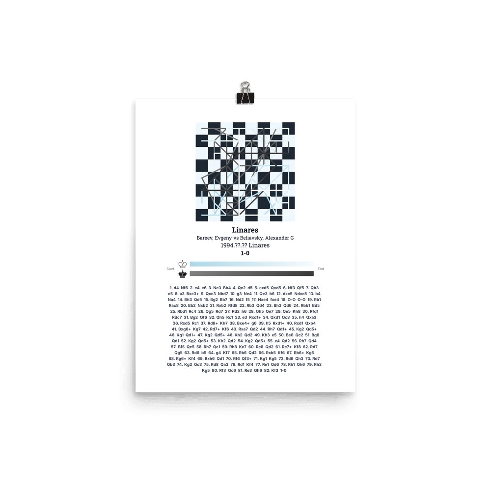 Museum-quality poster on thick, durable matte paper. A sharp, clean look for any chess visualisation.