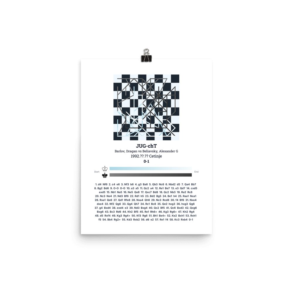 Museum-quality poster on thick, durable matte paper. A sharp, clean look for any chess visualisation.