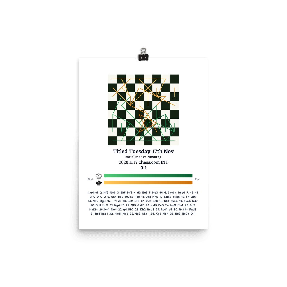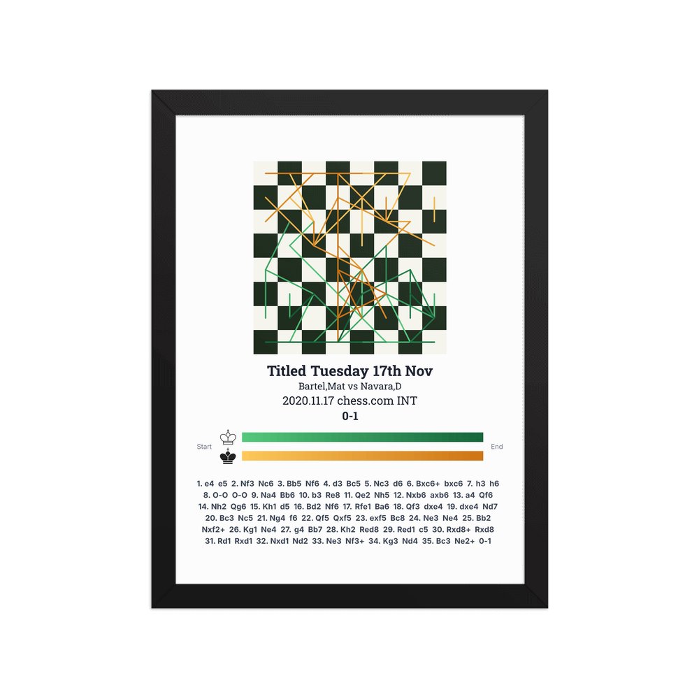 Museum-quality poster on thick, durable matte paper. A sharp, clean look for any chess visualisation.