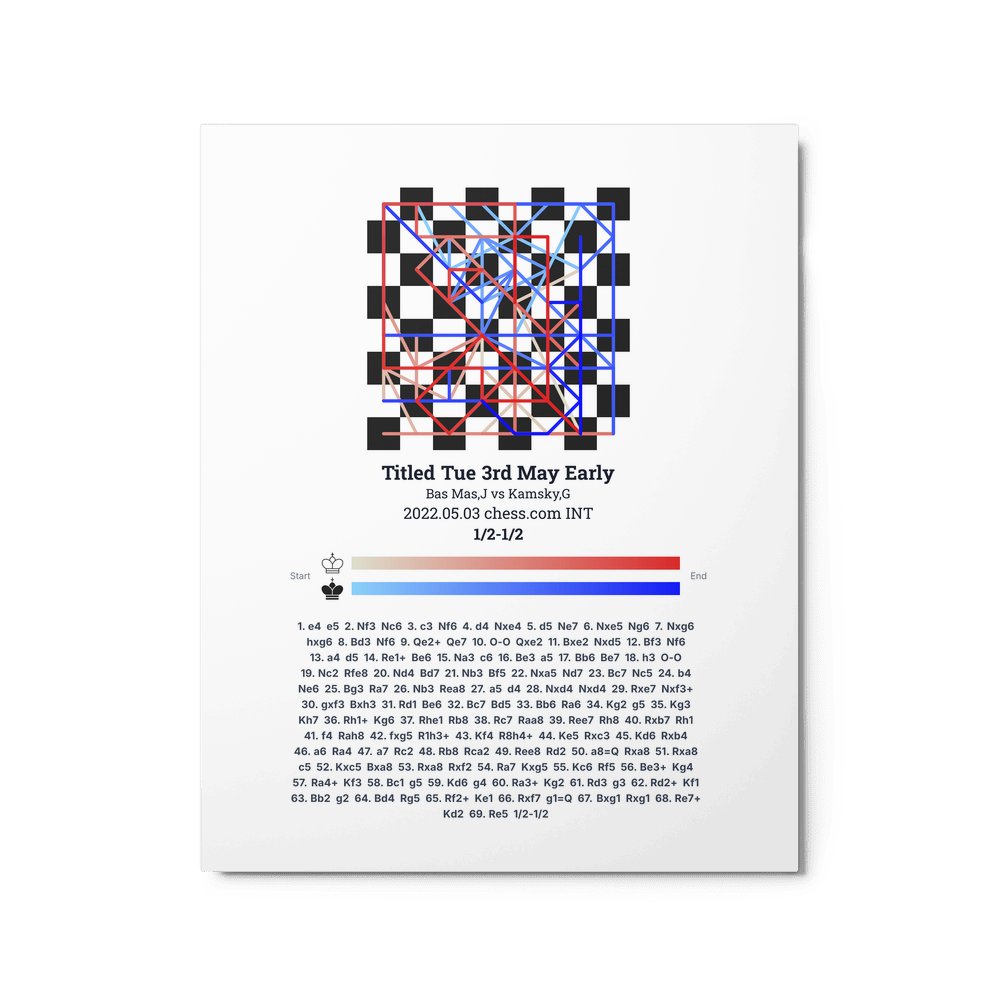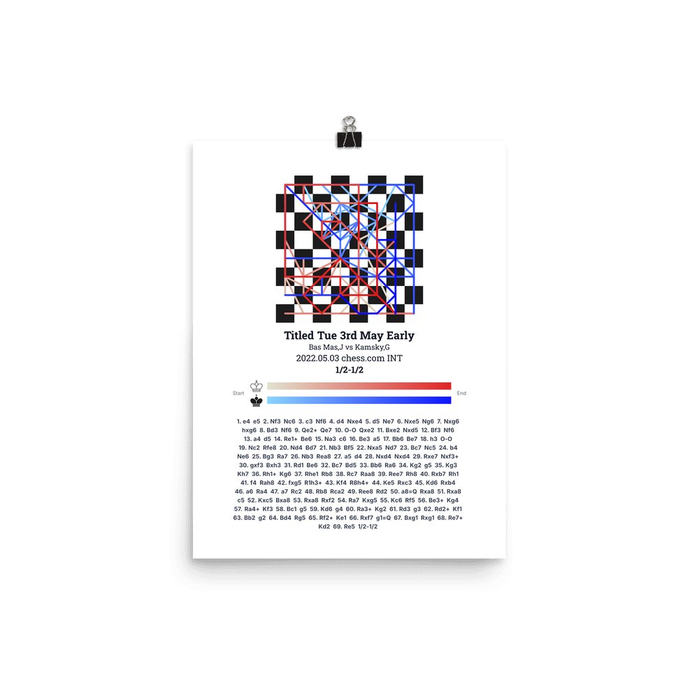 Museum-quality poster on thick, durable matte paper. A sharp, clean look for any chess visualisation.