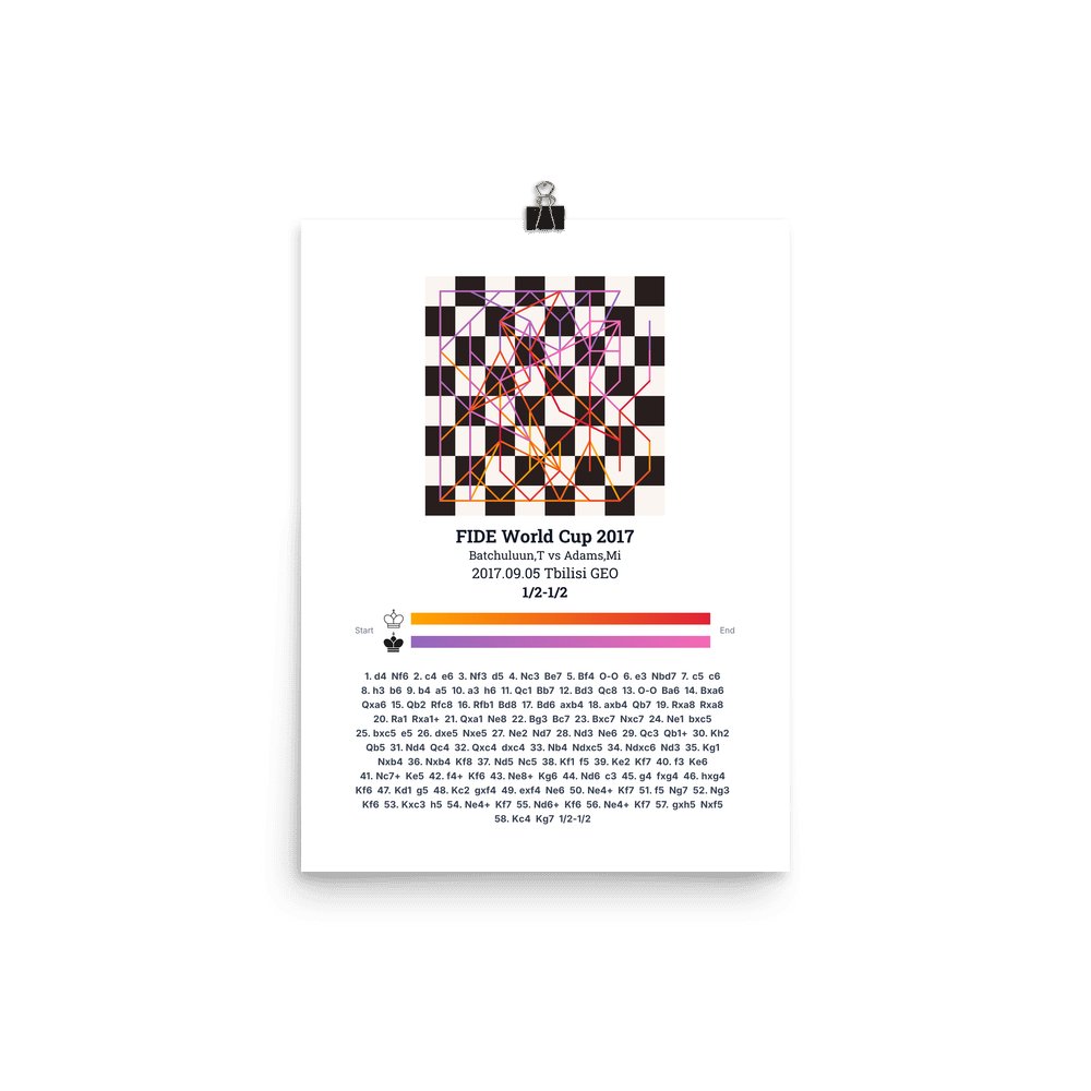 Museum-quality poster on thick, durable matte paper. A sharp, clean look for any chess visualisation.