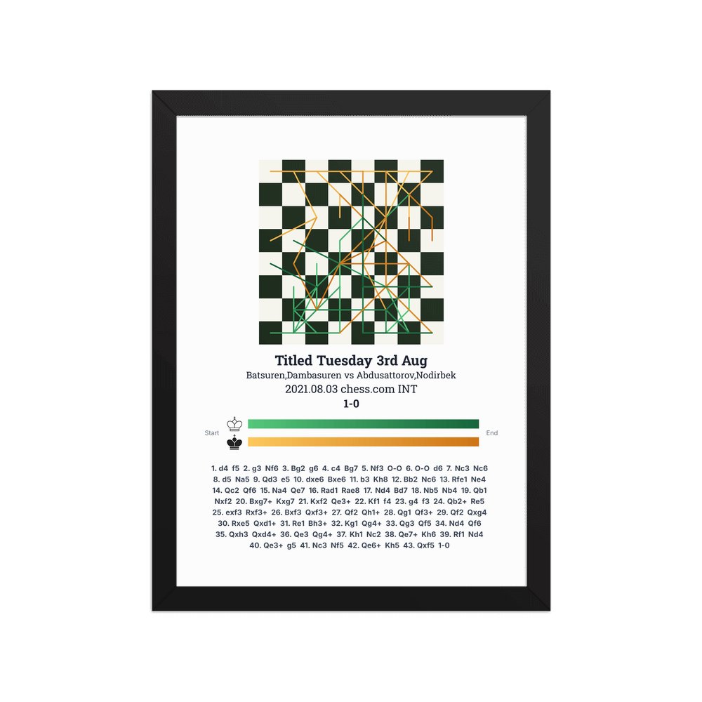 Museum-quality poster on thick, durable matte paper. A sharp, clean look for any chess visualisation.