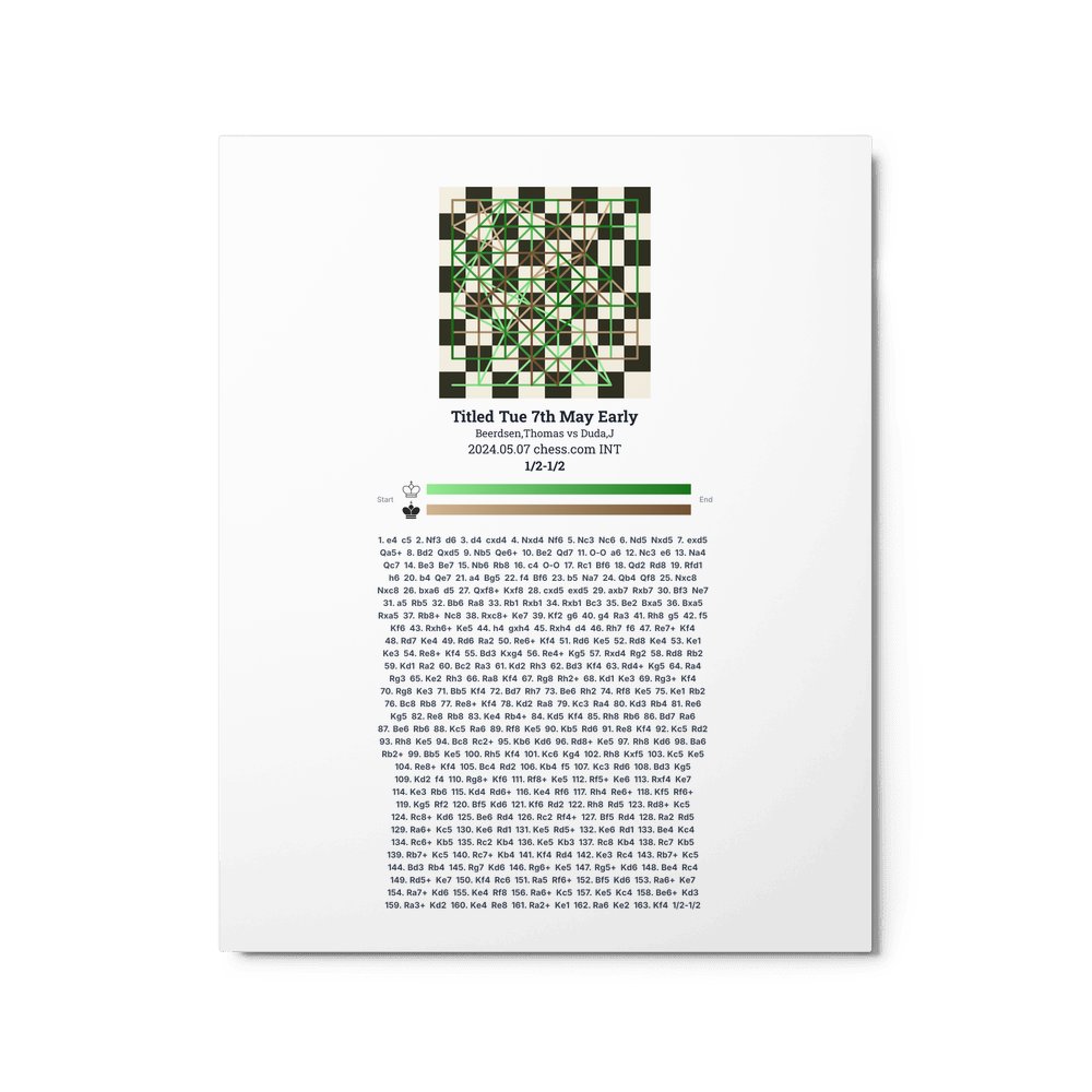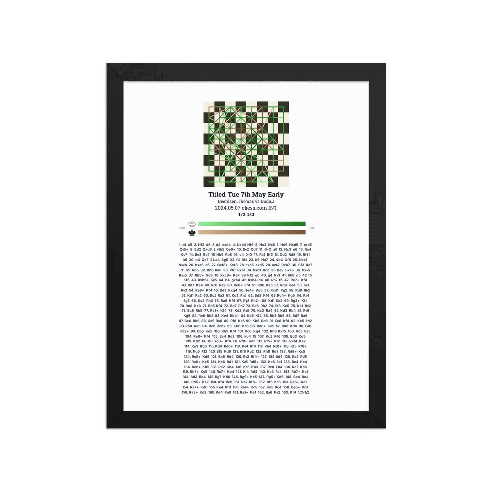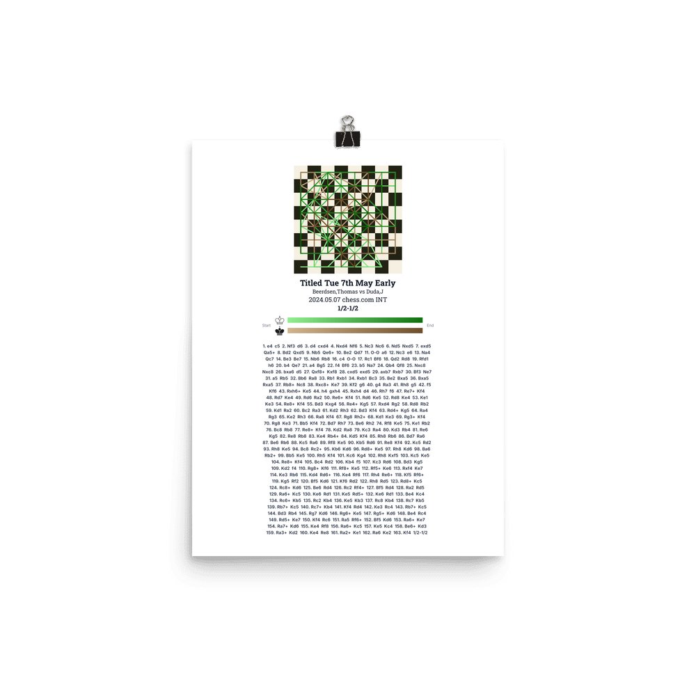 Museum-quality poster on thick, durable matte paper. A sharp, clean look for any chess visualisation.