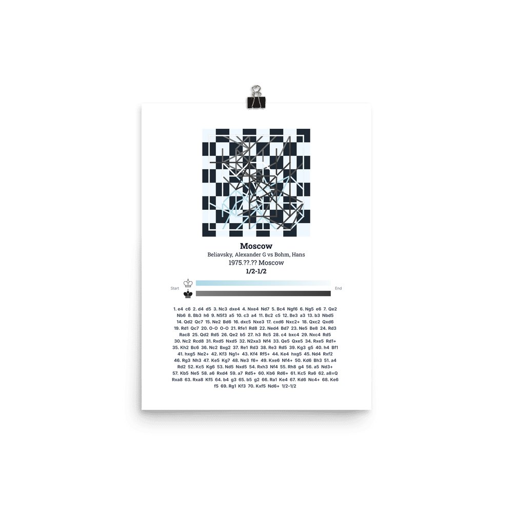 Museum-quality poster on thick, durable matte paper. A sharp, clean look for any chess visualisation.