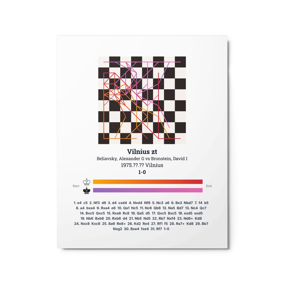 Museum-quality poster on thick, durable matte paper. A sharp, clean look for any chess visualisation.