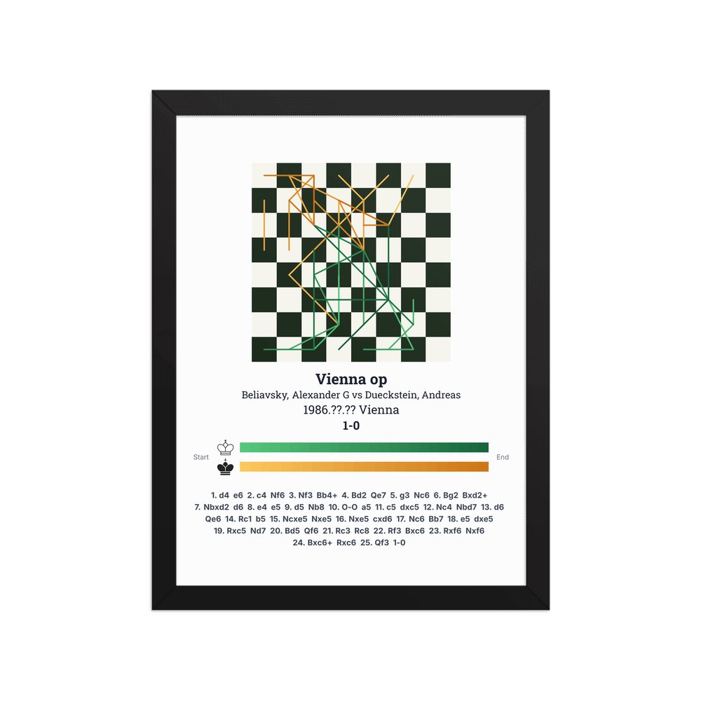 Museum-quality poster on thick, durable matte paper. A sharp, clean look for any chess visualisation.