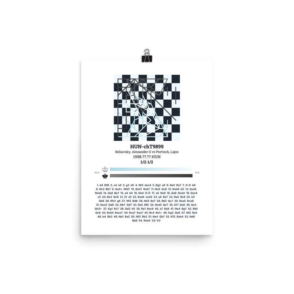 Museum-quality poster on thick, durable matte paper. A sharp, clean look for any chess visualisation.