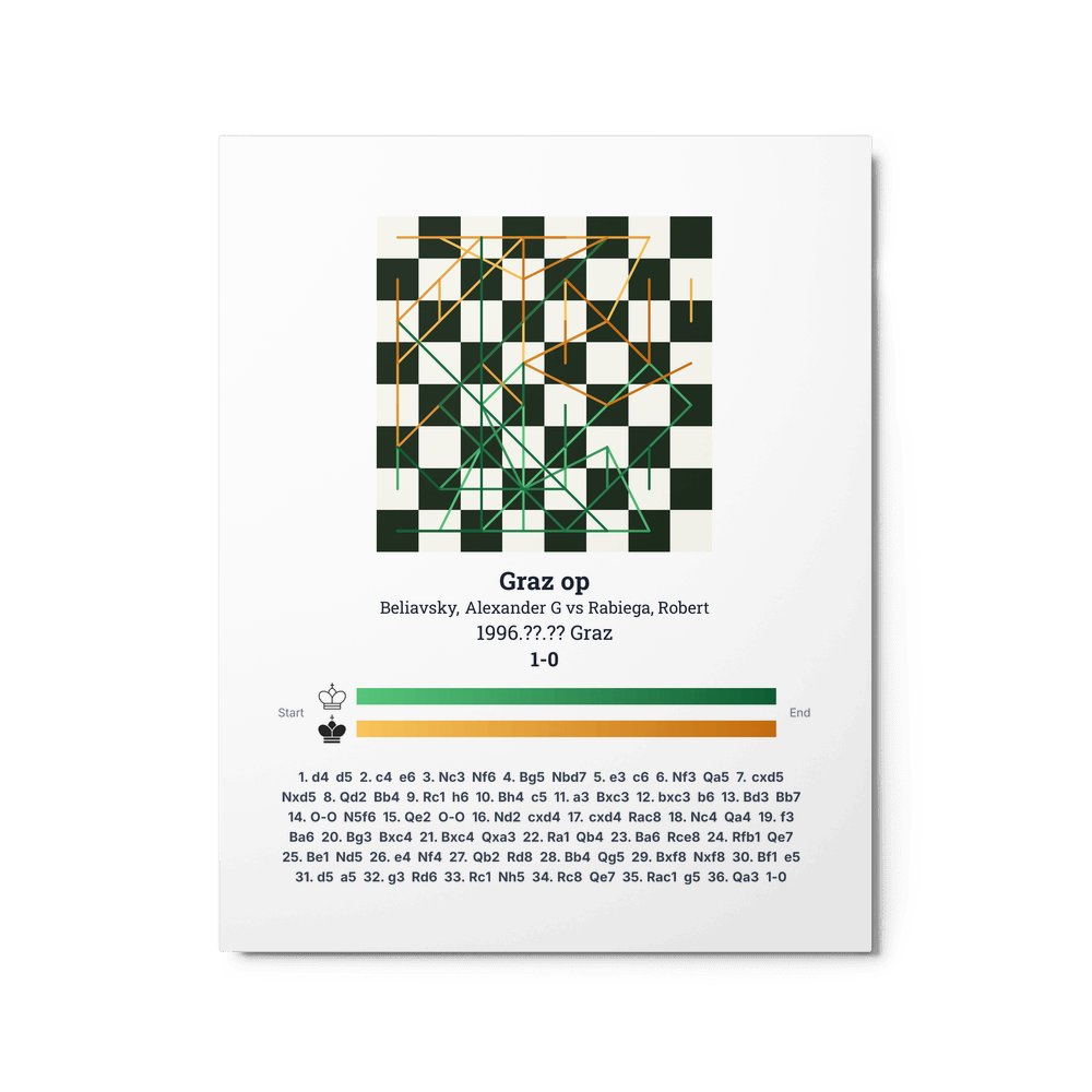 Museum-quality poster on thick, durable matte paper. A sharp, clean look for any chess visualisation.