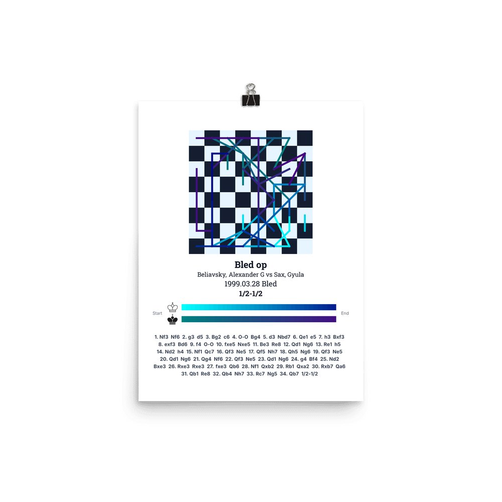 Museum-quality poster on thick, durable matte paper. A sharp, clean look for any chess visualisation.