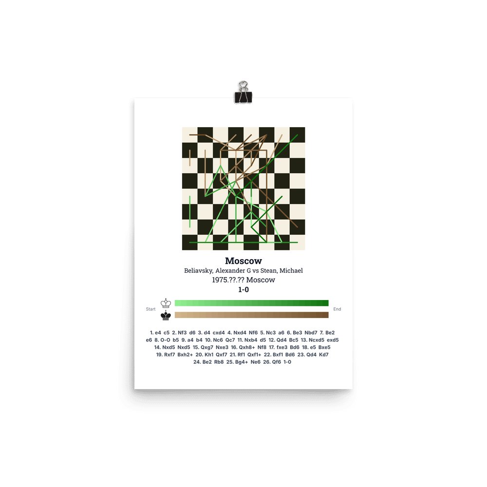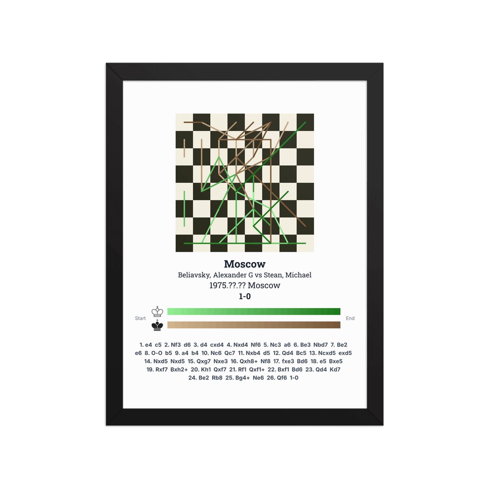 Museum-quality poster on thick, durable matte paper. A sharp, clean look for any chess visualisation.