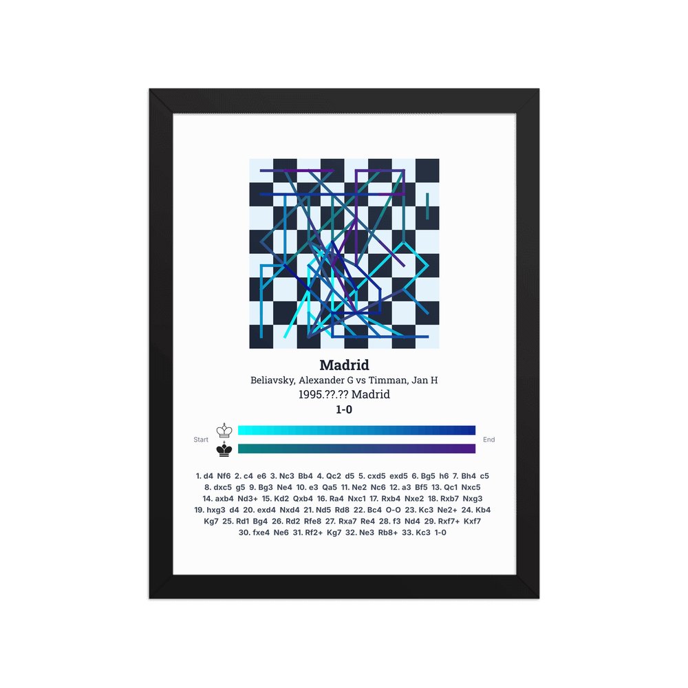 Museum-quality poster on thick, durable matte paper. A sharp, clean look for any chess visualisation.