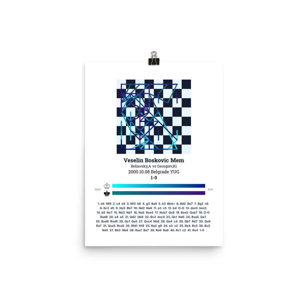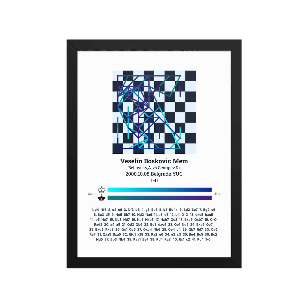 Museum-quality poster on thick, durable matte paper. A sharp, clean look for any chess visualisation.