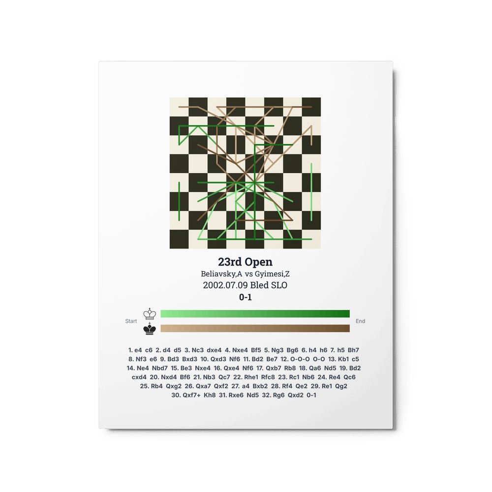 Museum-quality poster on thick, durable matte paper. A sharp, clean look for any chess visualisation.
