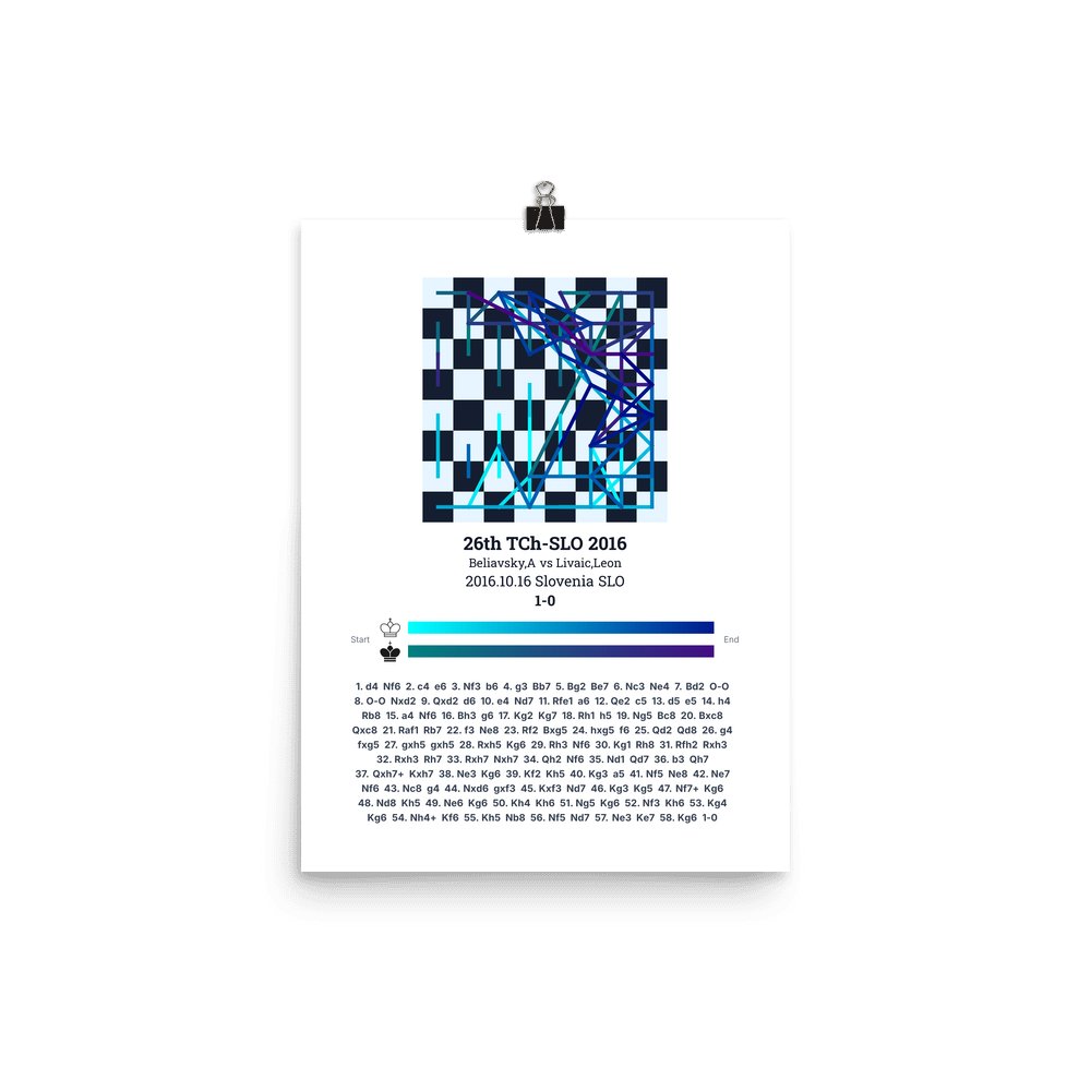 Museum-quality poster on thick, durable matte paper. A sharp, clean look for any chess visualisation.