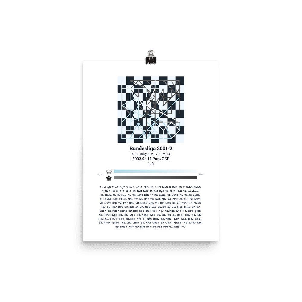 Museum-quality poster on thick, durable matte paper. A sharp, clean look for any chess visualisation.