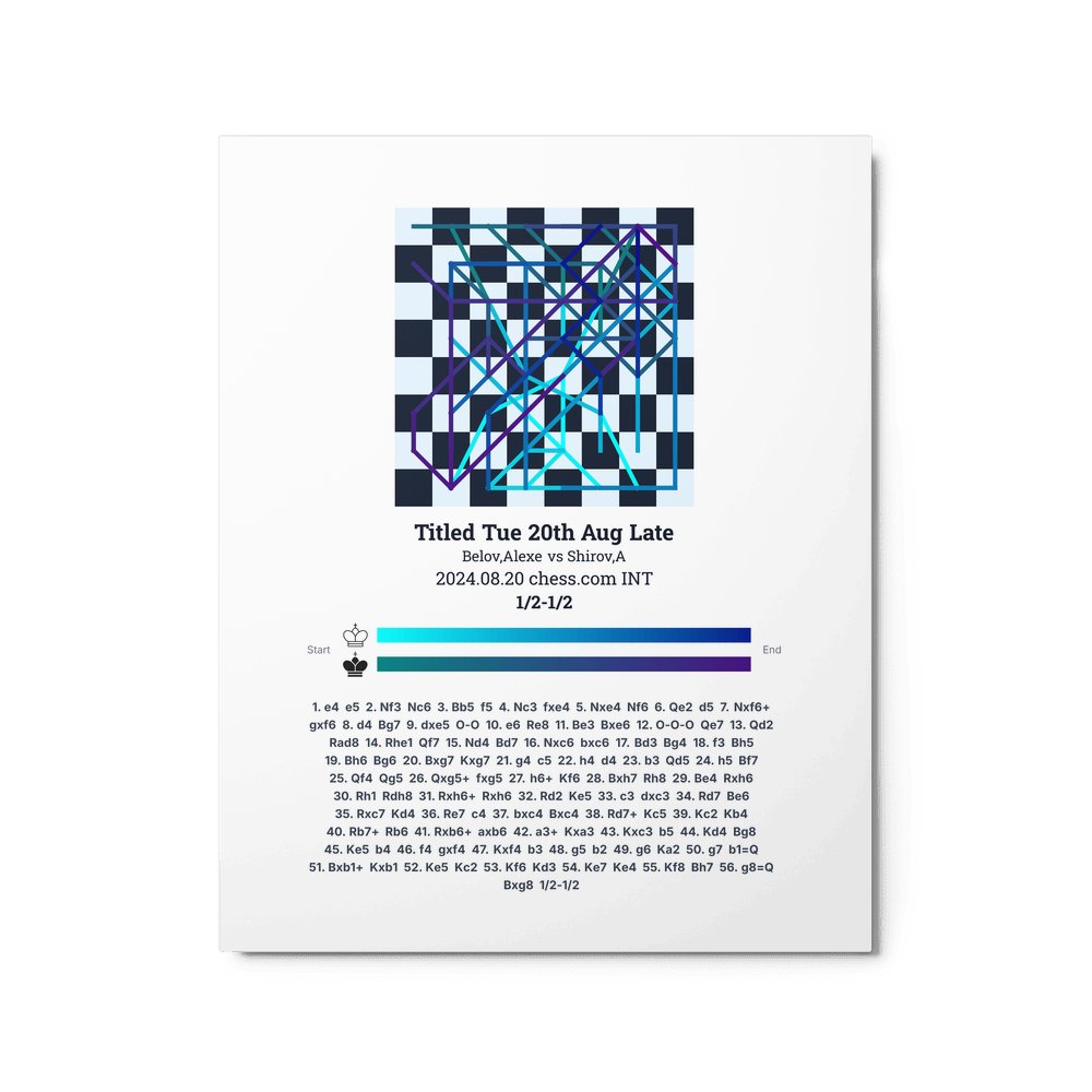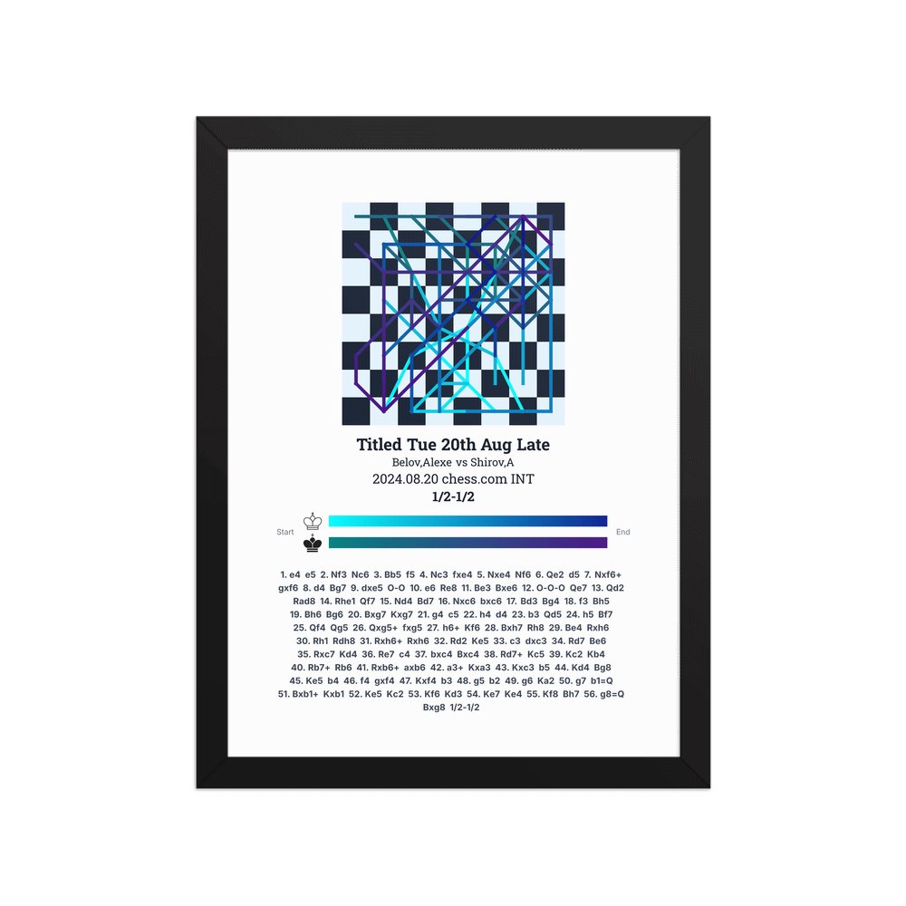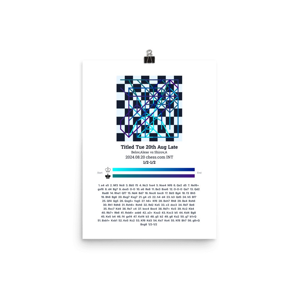 Museum-quality poster on thick, durable matte paper. A sharp, clean look for any chess visualisation.
