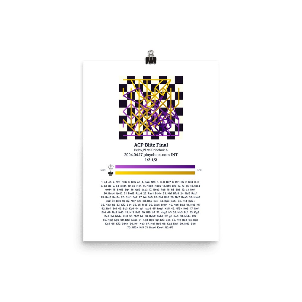 Museum-quality poster on thick, durable matte paper. A sharp, clean look for any chess visualisation.