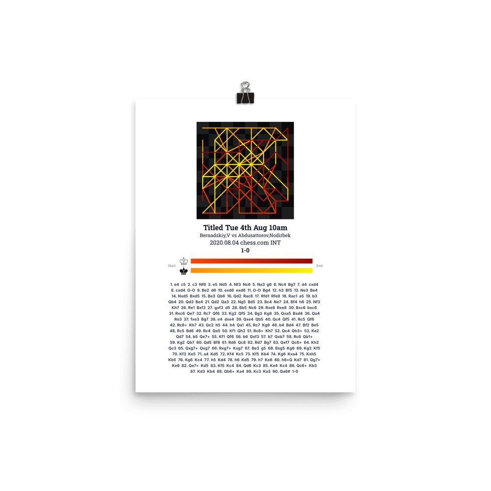 Museum-quality poster on thick, durable matte paper. A sharp, clean look for any chess visualisation.