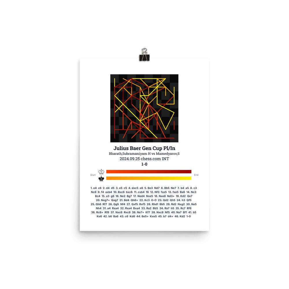 Museum-quality poster on thick, durable matte paper. A sharp, clean look for any chess visualisation.