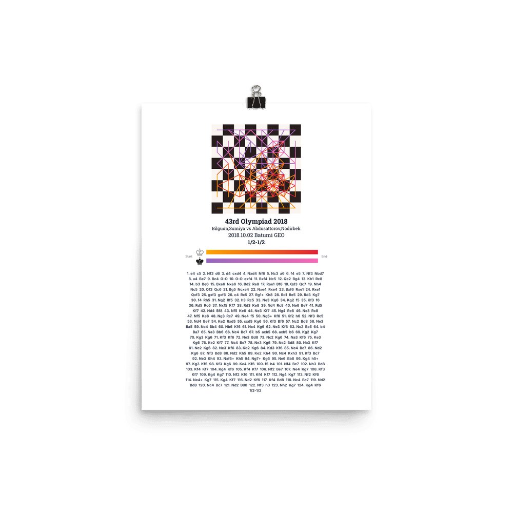 Museum-quality poster on thick, durable matte paper. A sharp, clean look for any chess visualisation.