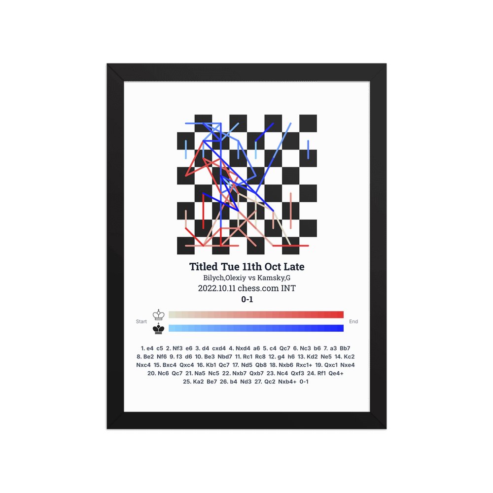 Museum-quality poster on thick, durable matte paper. A sharp, clean look for any chess visualisation.