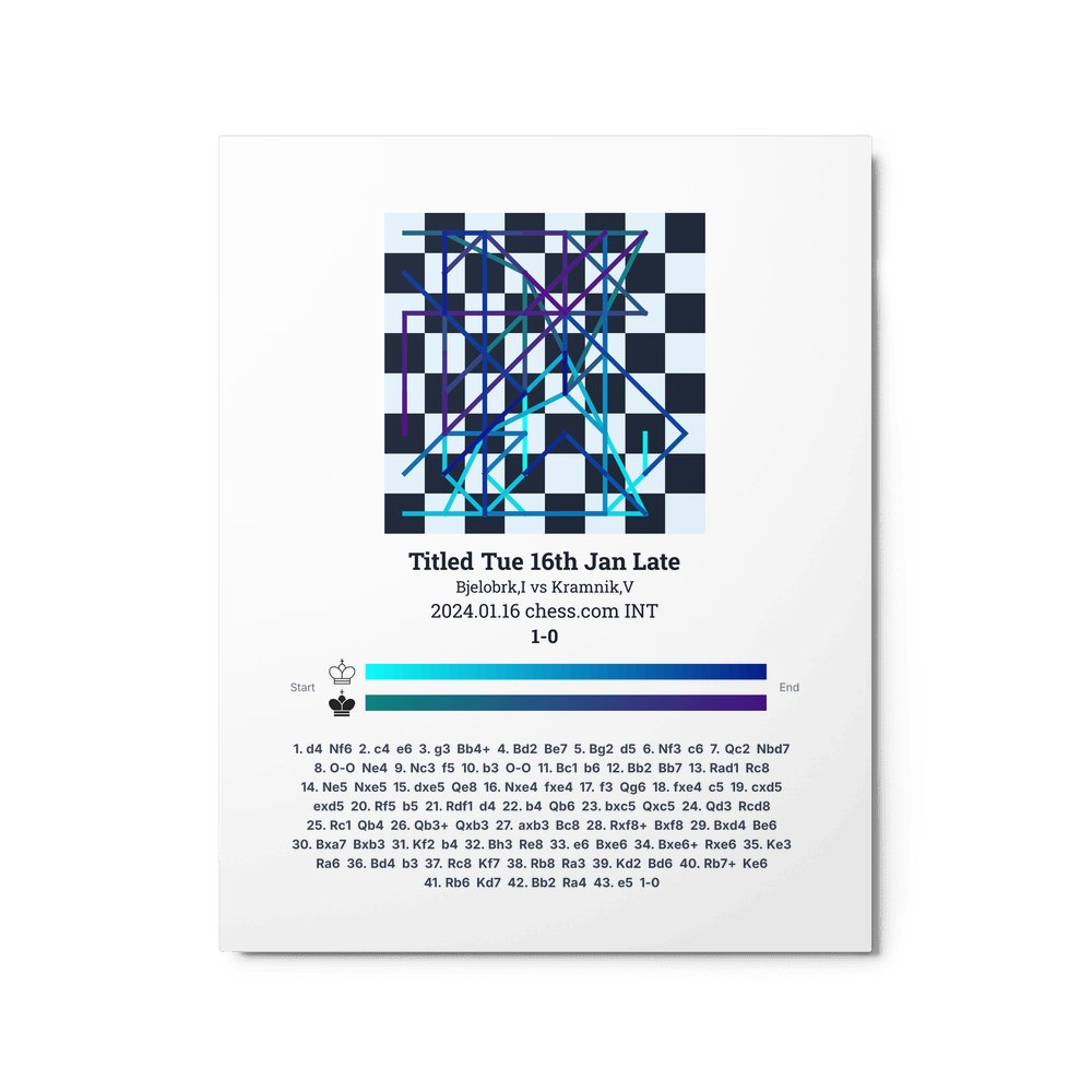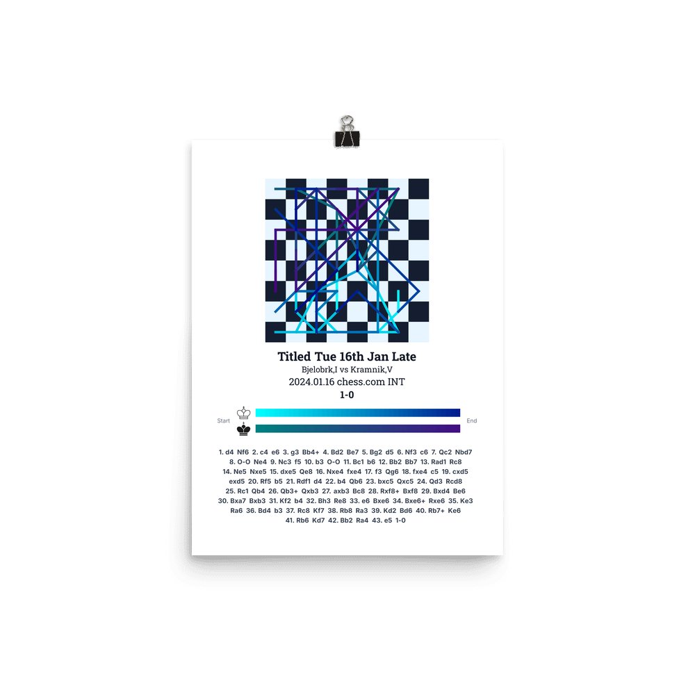 Museum-quality poster on thick, durable matte paper. A sharp, clean look for any chess visualisation.