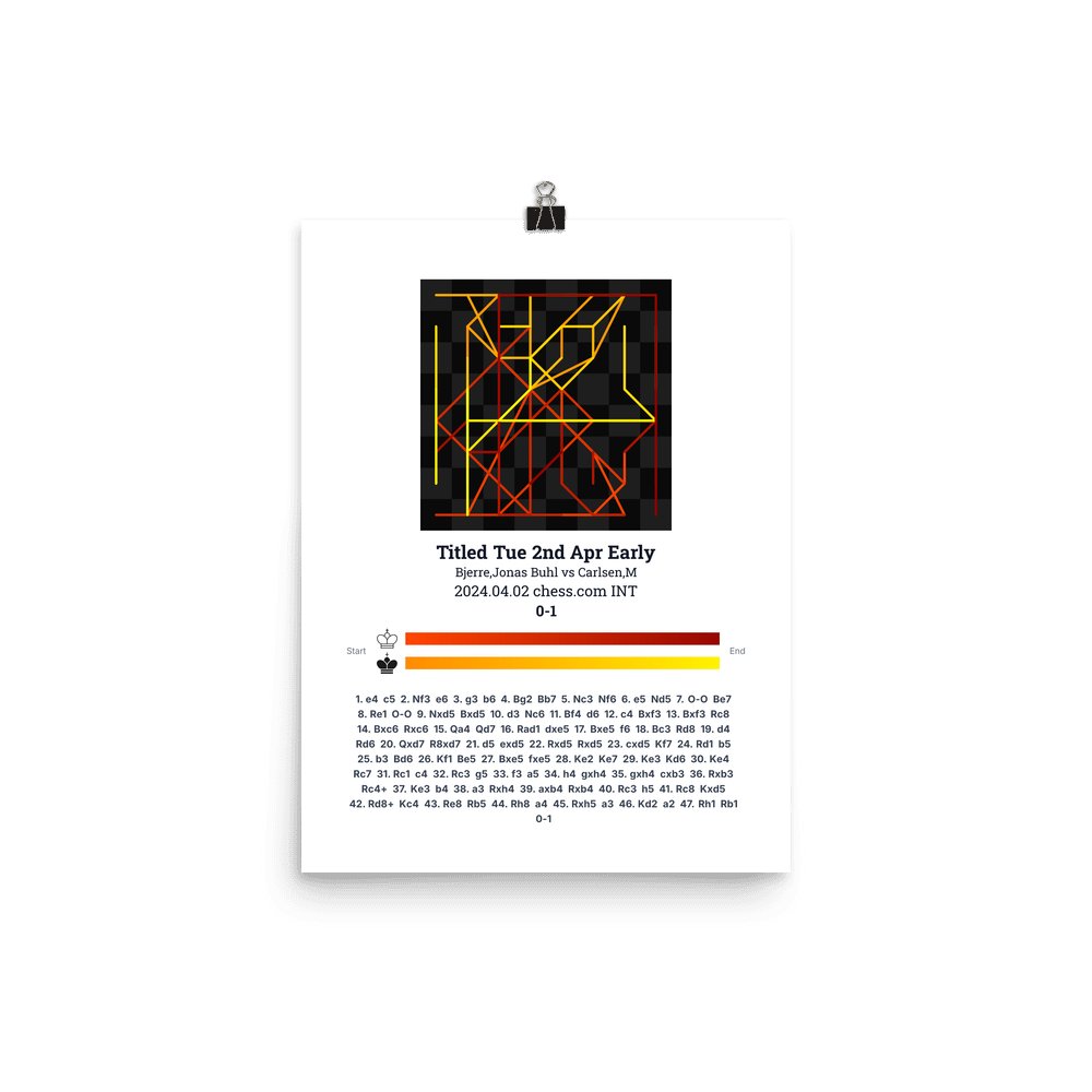Museum-quality poster on thick, durable matte paper. A sharp, clean look for any chess visualisation.