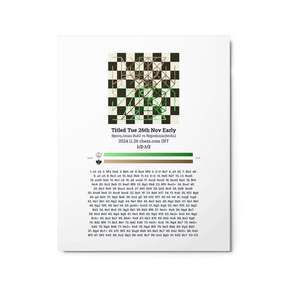 Museum-quality poster on thick, durable matte paper. A sharp, clean look for any chess visualisation.