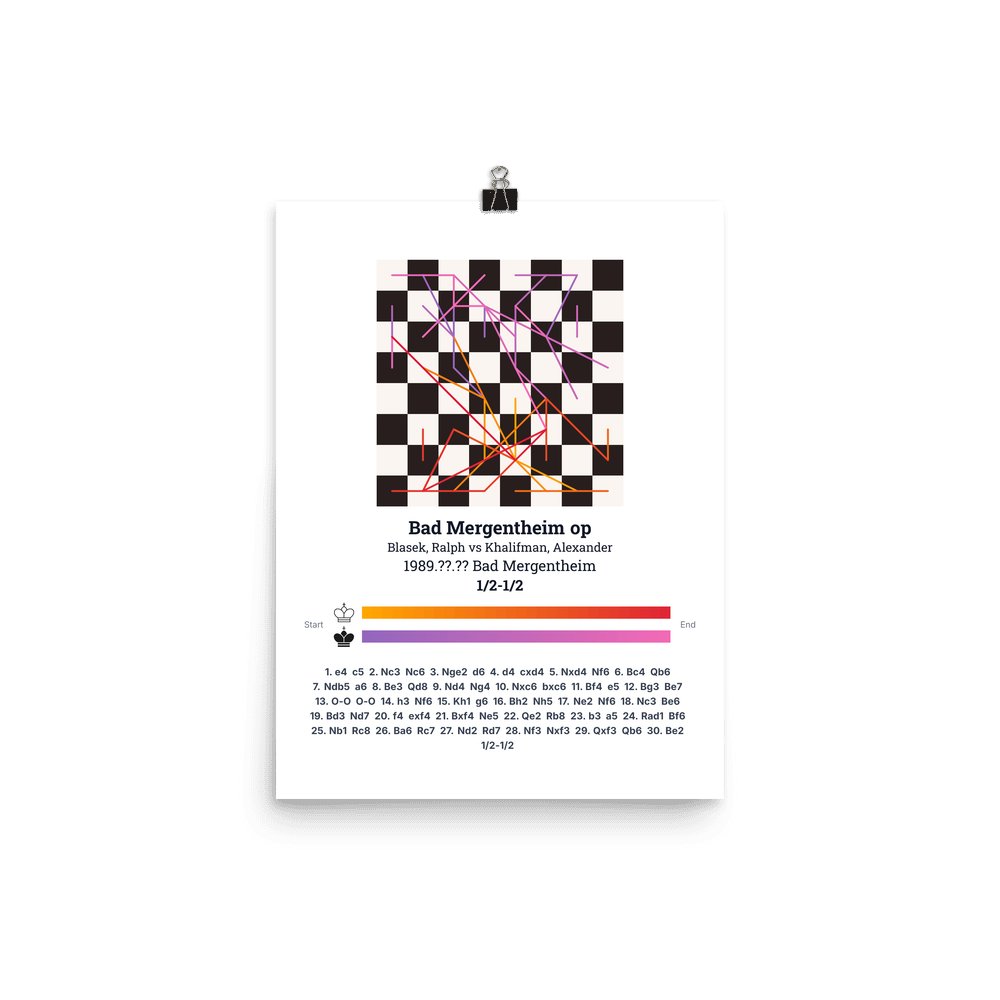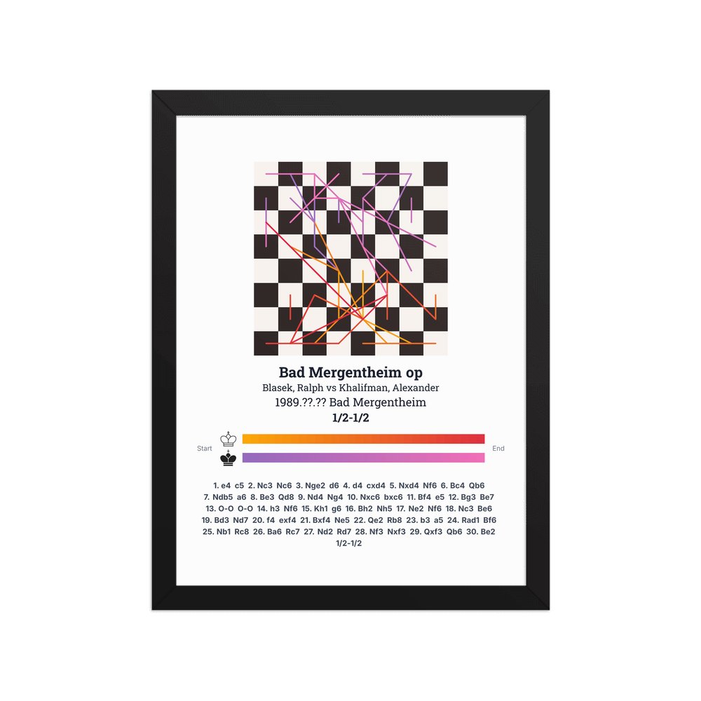 Museum-quality poster on thick, durable matte paper. A sharp, clean look for any chess visualisation.