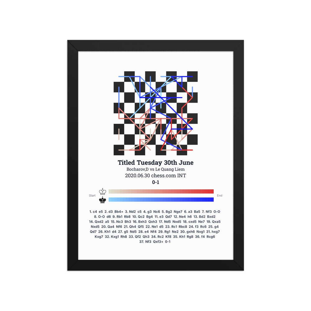 Museum-quality poster on thick, durable matte paper. A sharp, clean look for any chess visualisation.