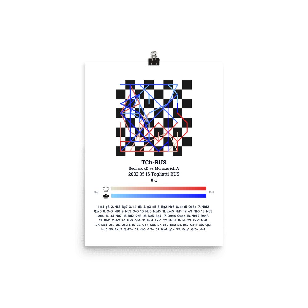 Museum-quality poster on thick, durable matte paper. A sharp, clean look for any chess visualisation.