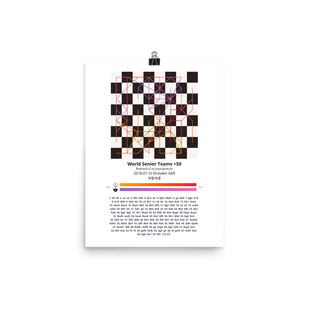 Museum-quality poster on thick, durable matte paper. A sharp, clean look for any chess visualisation.