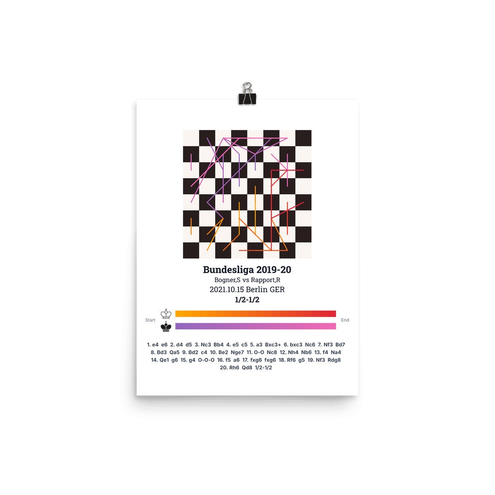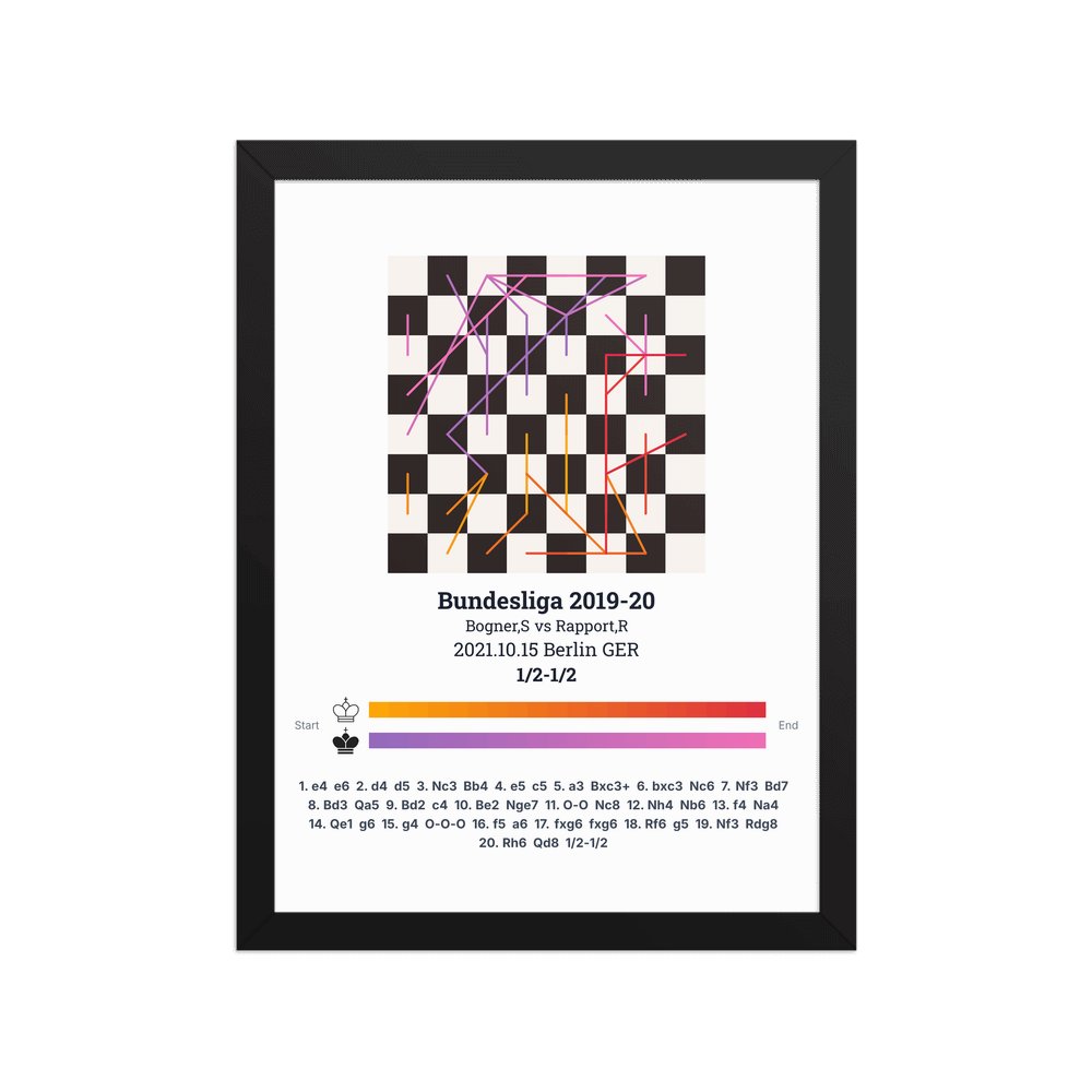 Museum-quality poster on thick, durable matte paper. A sharp, clean look for any chess visualisation.