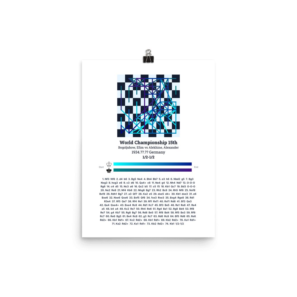 Museum-quality poster on thick, durable matte paper. A sharp, clean look for any chess visualisation.