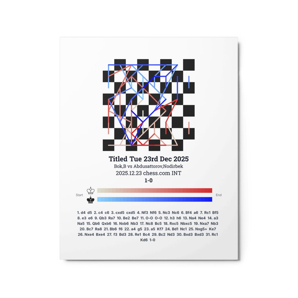 Museum-quality poster on thick, durable matte paper. A sharp, clean look for any chess visualisation.