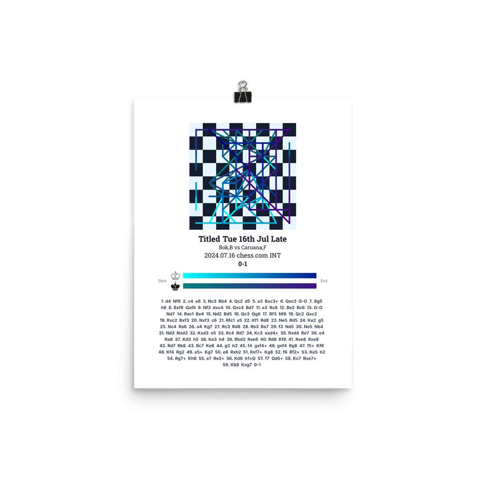 Museum-quality poster on thick, durable matte paper. A sharp, clean look for any chess visualisation.