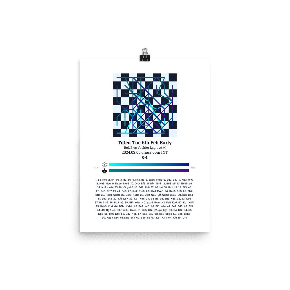 Museum-quality poster on thick, durable matte paper. A sharp, clean look for any chess visualisation.
