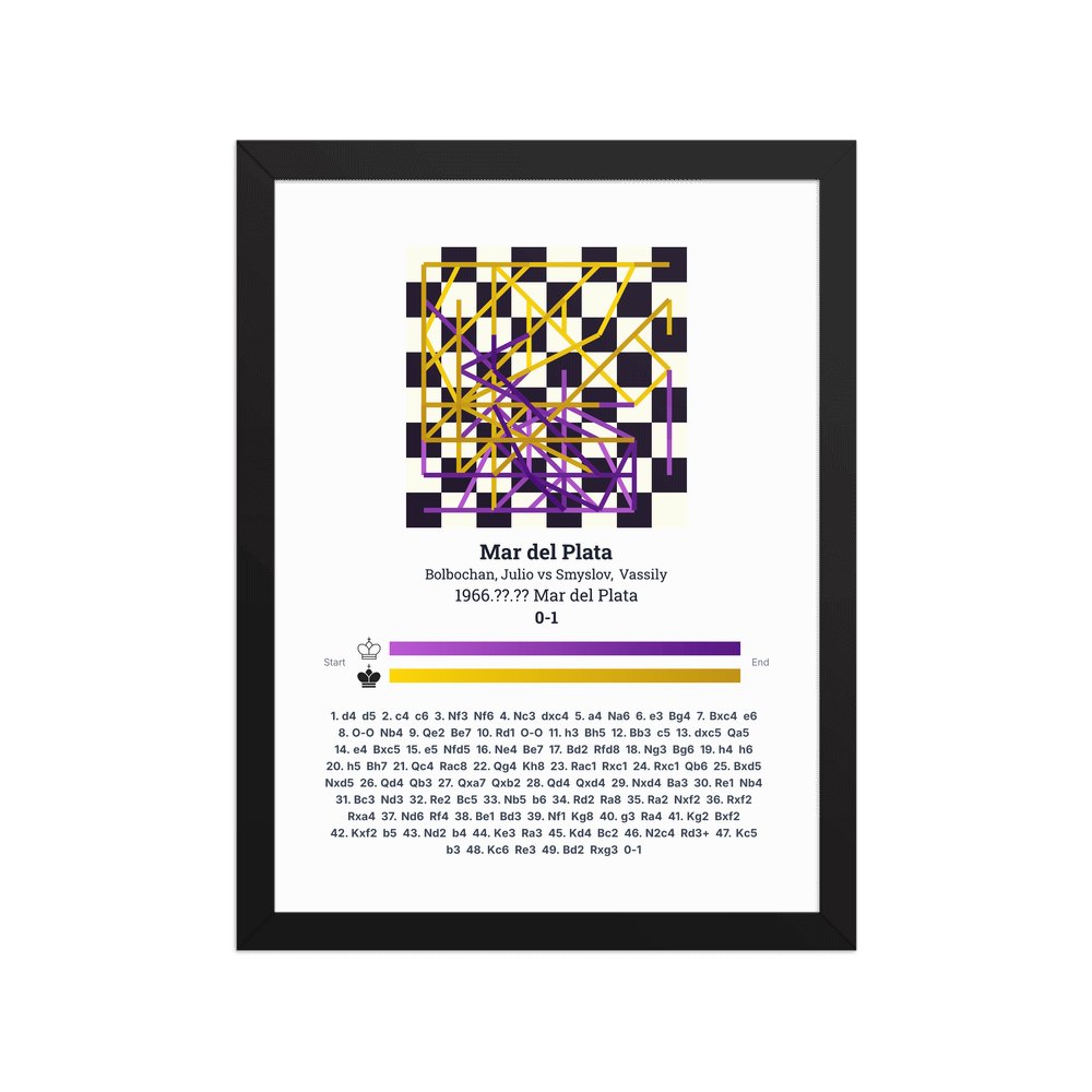 Museum-quality poster on thick, durable matte paper. A sharp, clean look for any chess visualisation.
