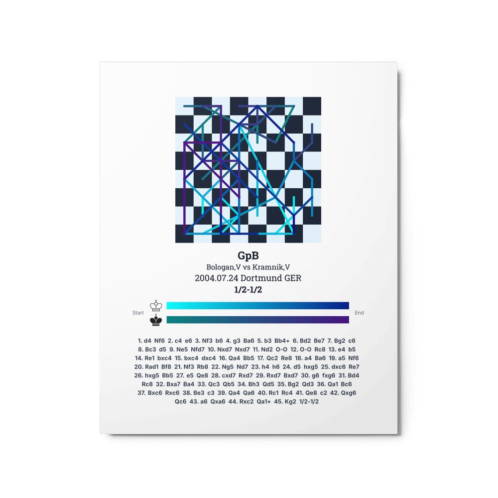 Museum-quality poster on thick, durable matte paper. A sharp, clean look for any chess visualisation.